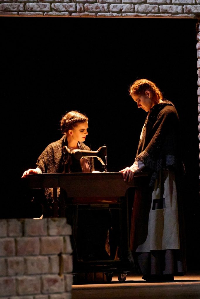 Leire Ormazabal takes part in this production as a performer, portraying multiple characters within a collective work that demands versatility and constant transformation. Her performance stands out for the creation of complex figures and her ability to bring emotional depth to each role, contributing to a production of great scenic intensity.